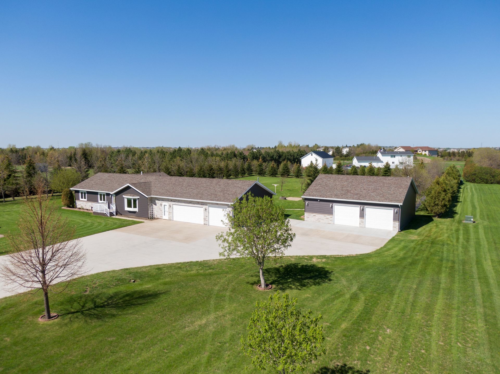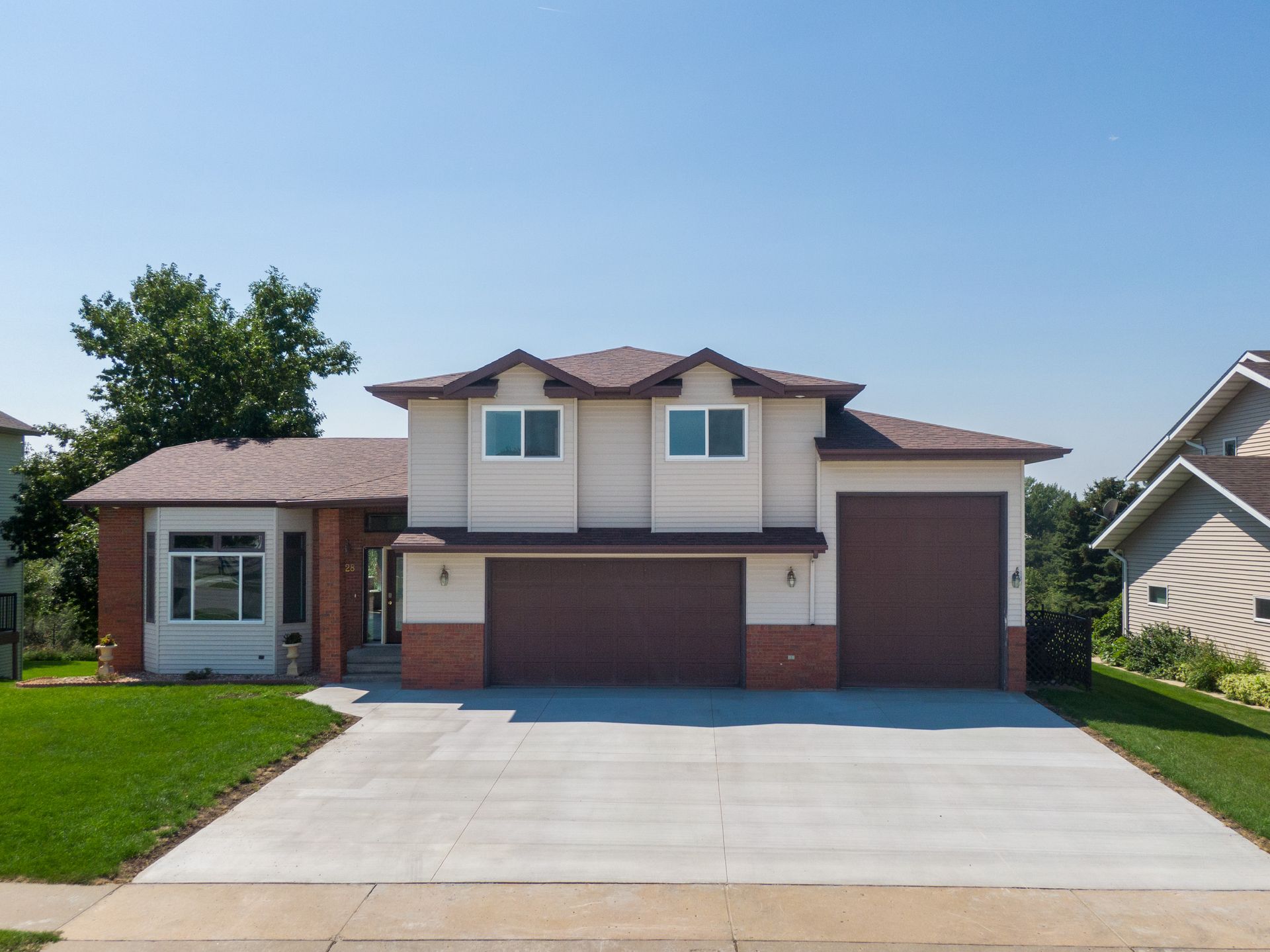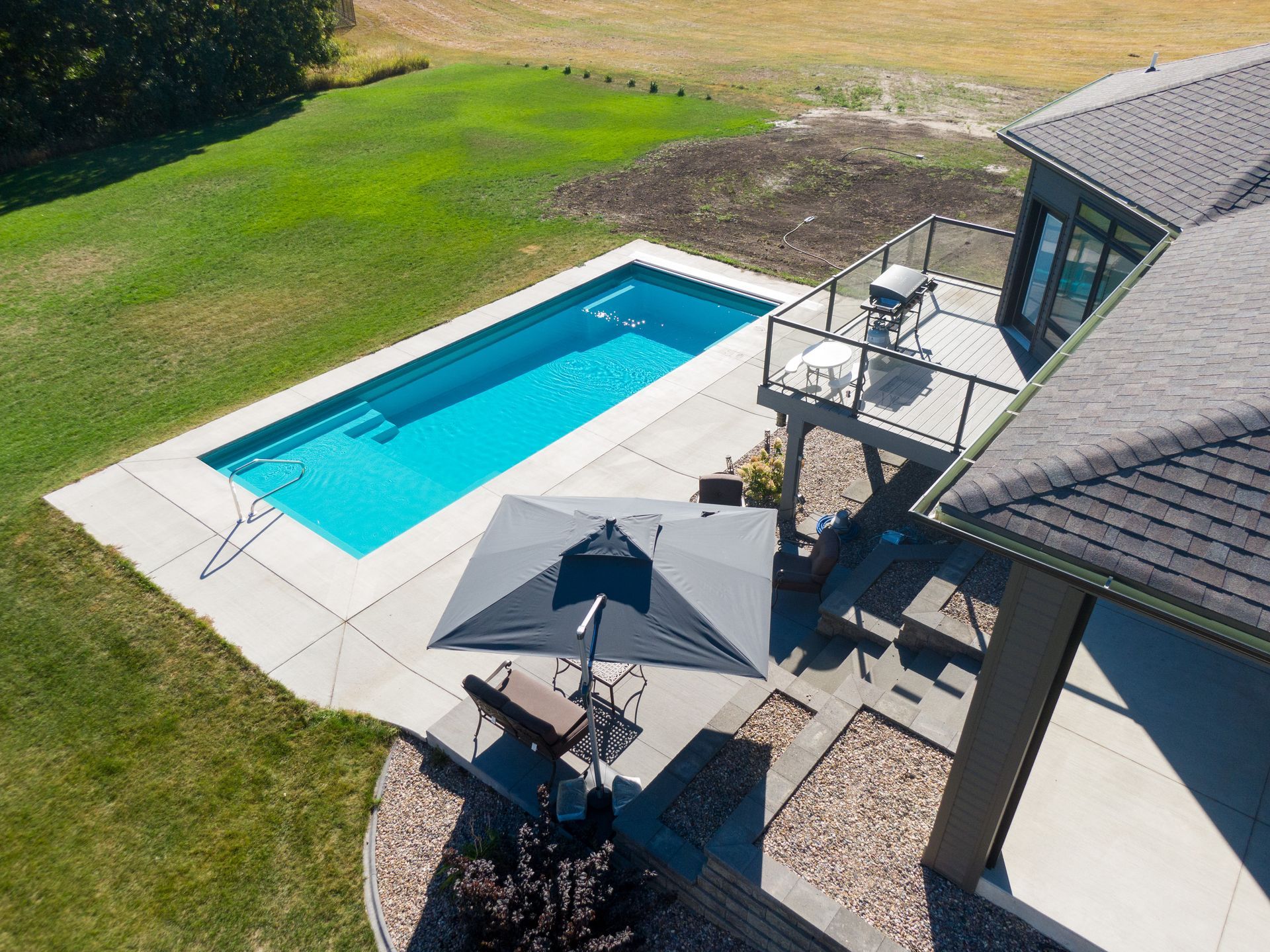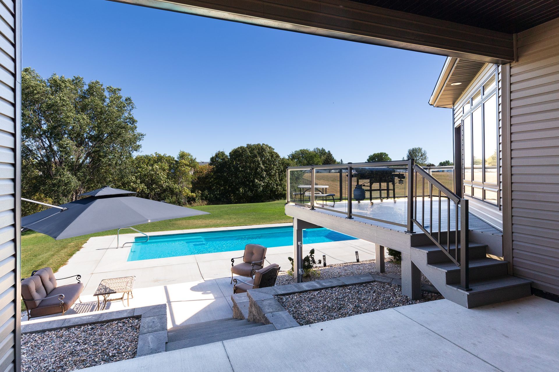 Welcome to your personal oasis with this spacious 5 bedroom, 3 bathroom ranch style home complete with an in-ground pool and expansive green space with no direct backyard neighbors. The main level features an open-concept layout where the living and dining areas flow seamlessly into the kitchen, boasting quartz countertops, stainless steel appliances, a pantry, and access to a maintenance-free deck. The primary suite includes a custom tiled shower, dual sinks, and a walk-in closet. Two additional bedrooms, a full bathroom, and a laundry area with washer & dryer round out the main floor. The lower level offers a family room with daylight windows, two bedrooms with walk-in closets, and a third bathroom. The media room comes with a wet bar and includes the theater equipment. An attached, heated and insulated garage with hot & cold water and floor drain provides over 1,200 square feet of space and leads directly to the patio with a hot tub overlooking the 16x40 in-ground pool and backyard. Property details are per city records; buyer to verify.