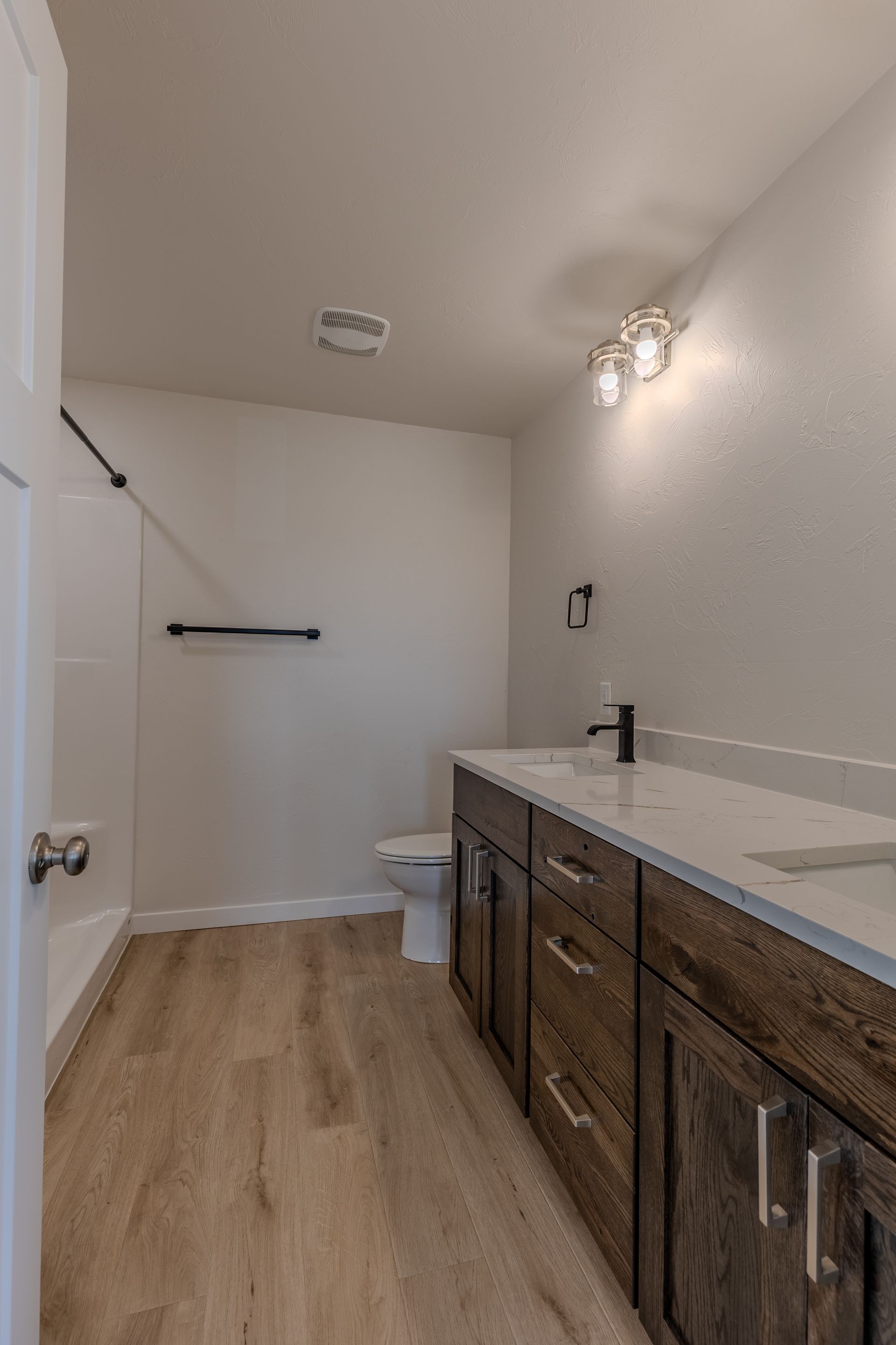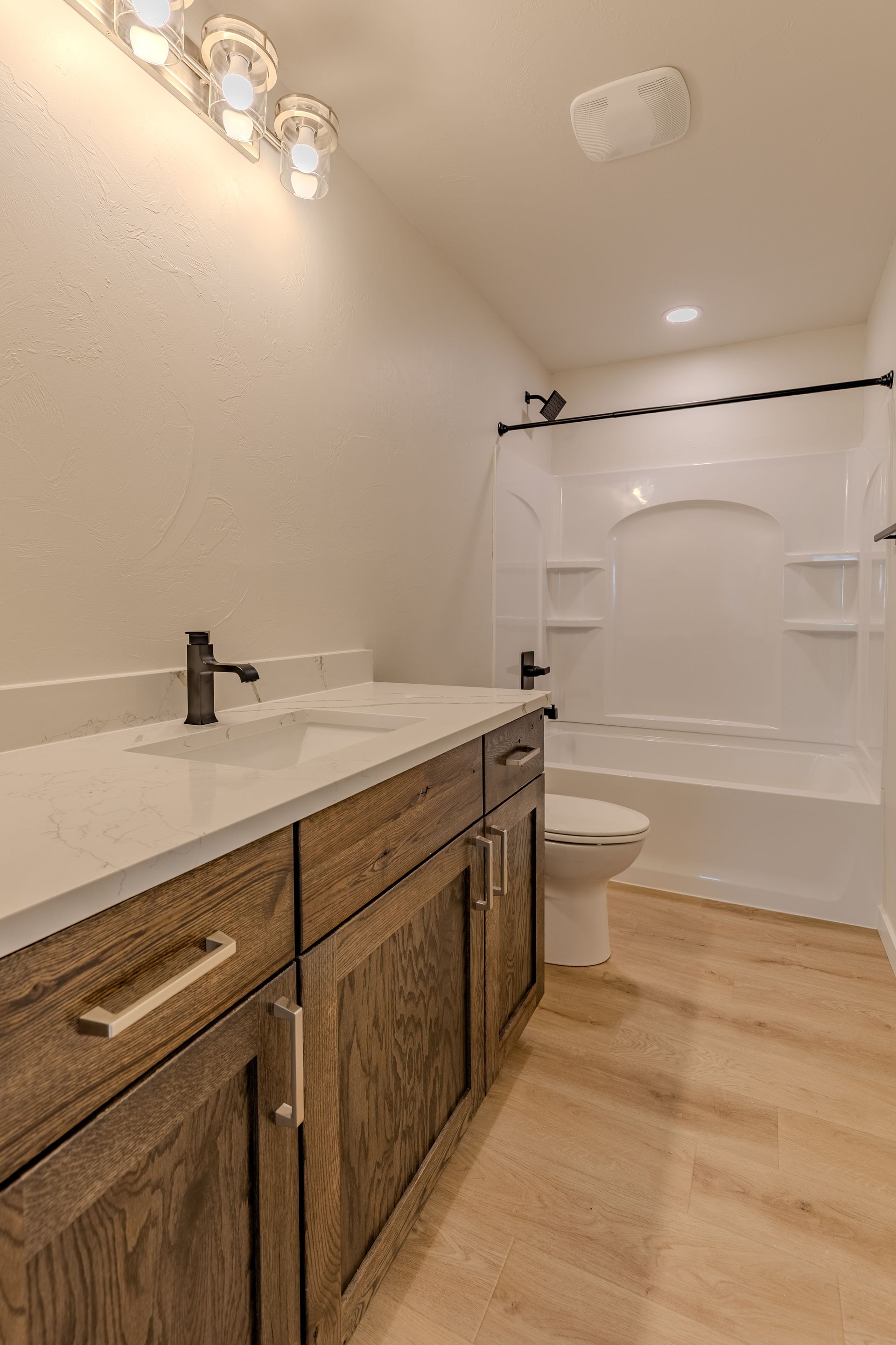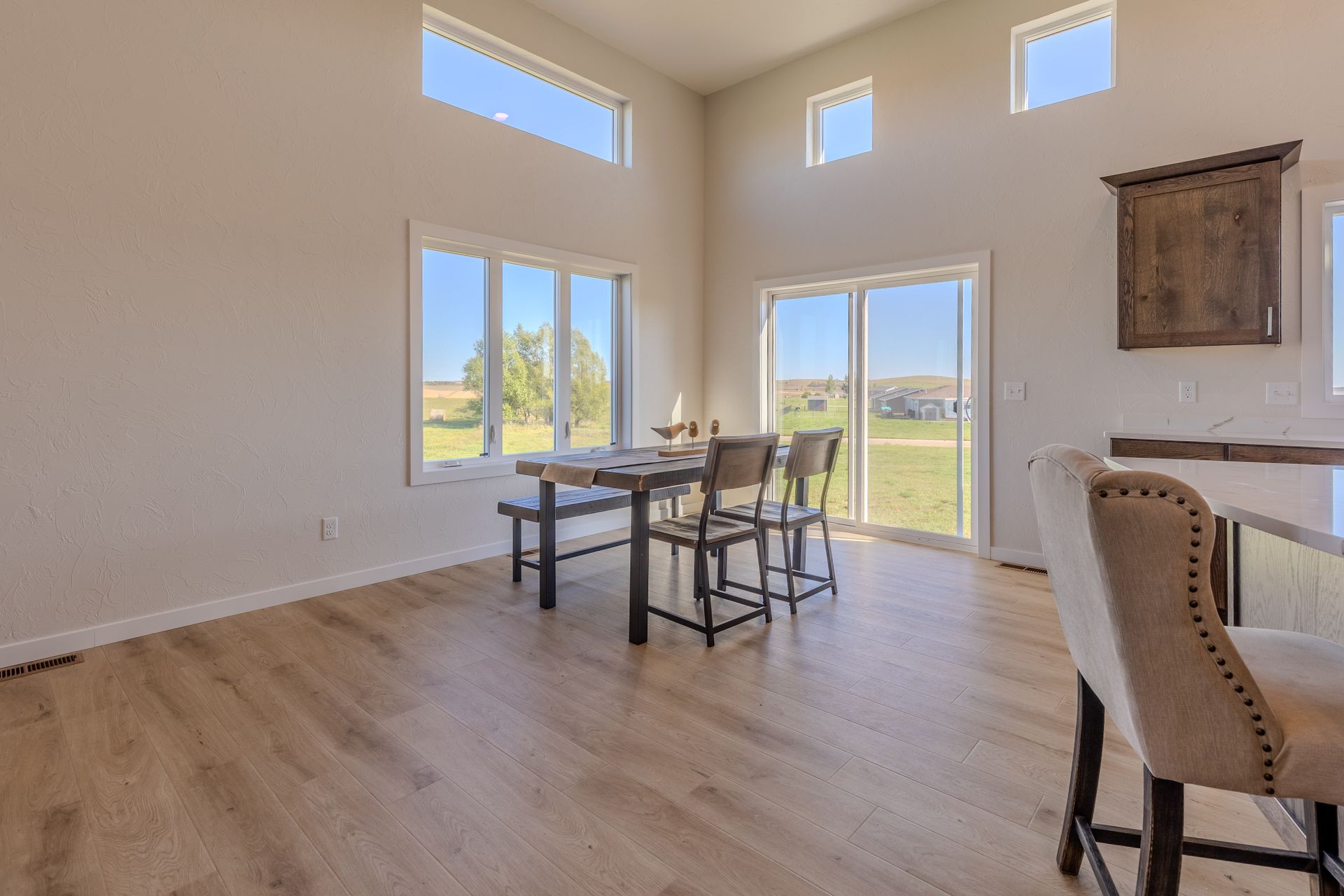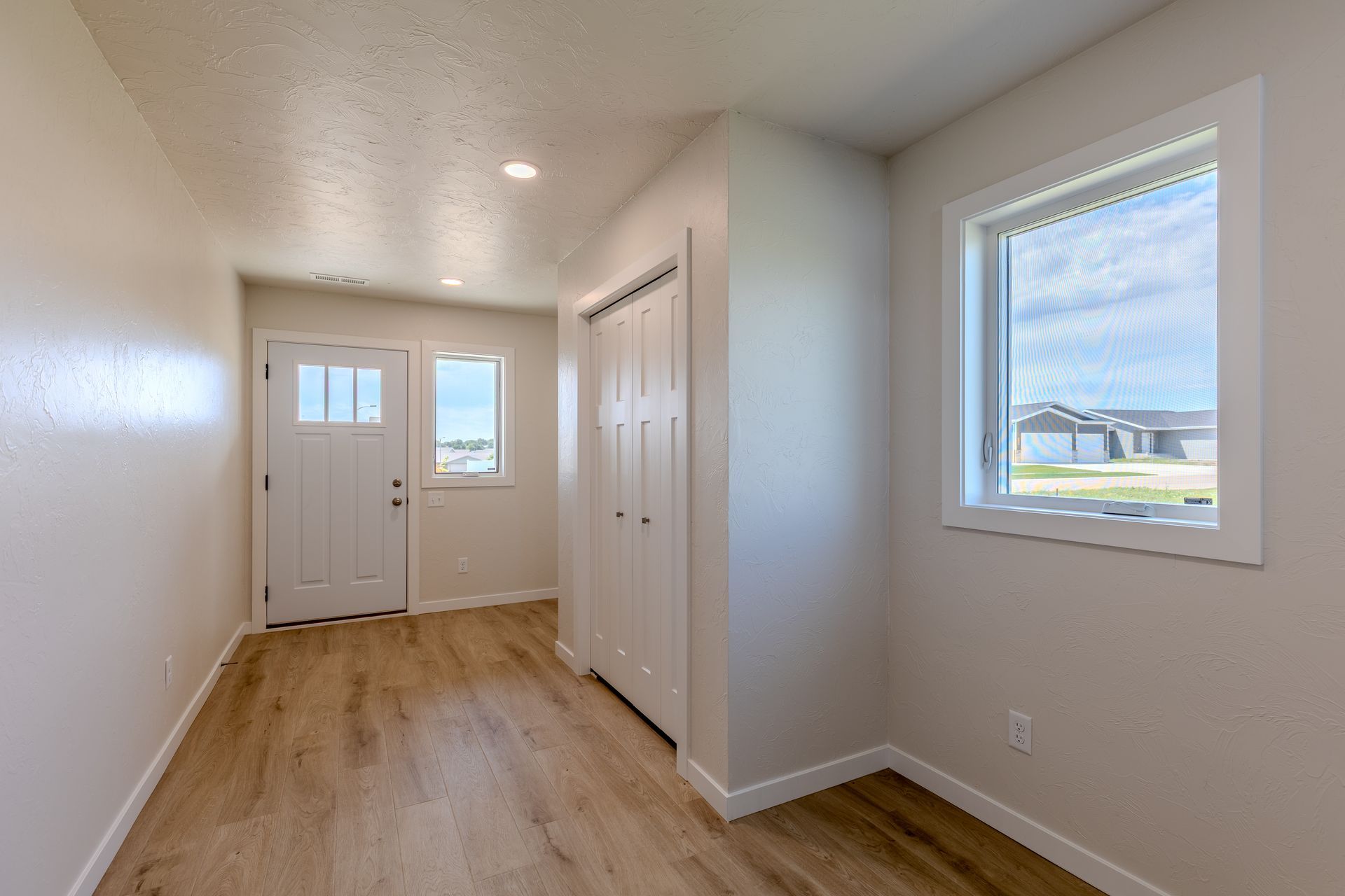 Welcome to this fully finished, newly built home in the Sattler's Sunrise Addition that is close to Sunrise Elementary School, shopping, dining, recreation trails, and more. This 4 bedroom, 3 bathroom home offers comfort, style, and functionality. The open-concept main level features soaring 12-foot ceilings, a living room, and a spacious kitchen with quartz countertops, soft-close drawers, a large center island, and two pantries. The adjacent dining area overlooks the backyard. Upstairs, the primary suite includes dual sinks, shower, and a walk-in closet with built-in shelving. You'll also find two additional bedrooms, a full bath, a laundry room with cabinets, and a storage room. The finished lower level boasts daylight windows, a large family room, a 4th bedroom, and another full bath. Extra storage is tucked beneath the oversized front entryway. The insulated 3-stall garage features a floor drain and water hookup. Note: Taxes and specials are not yet finalized—buyer to verify including all other property information.