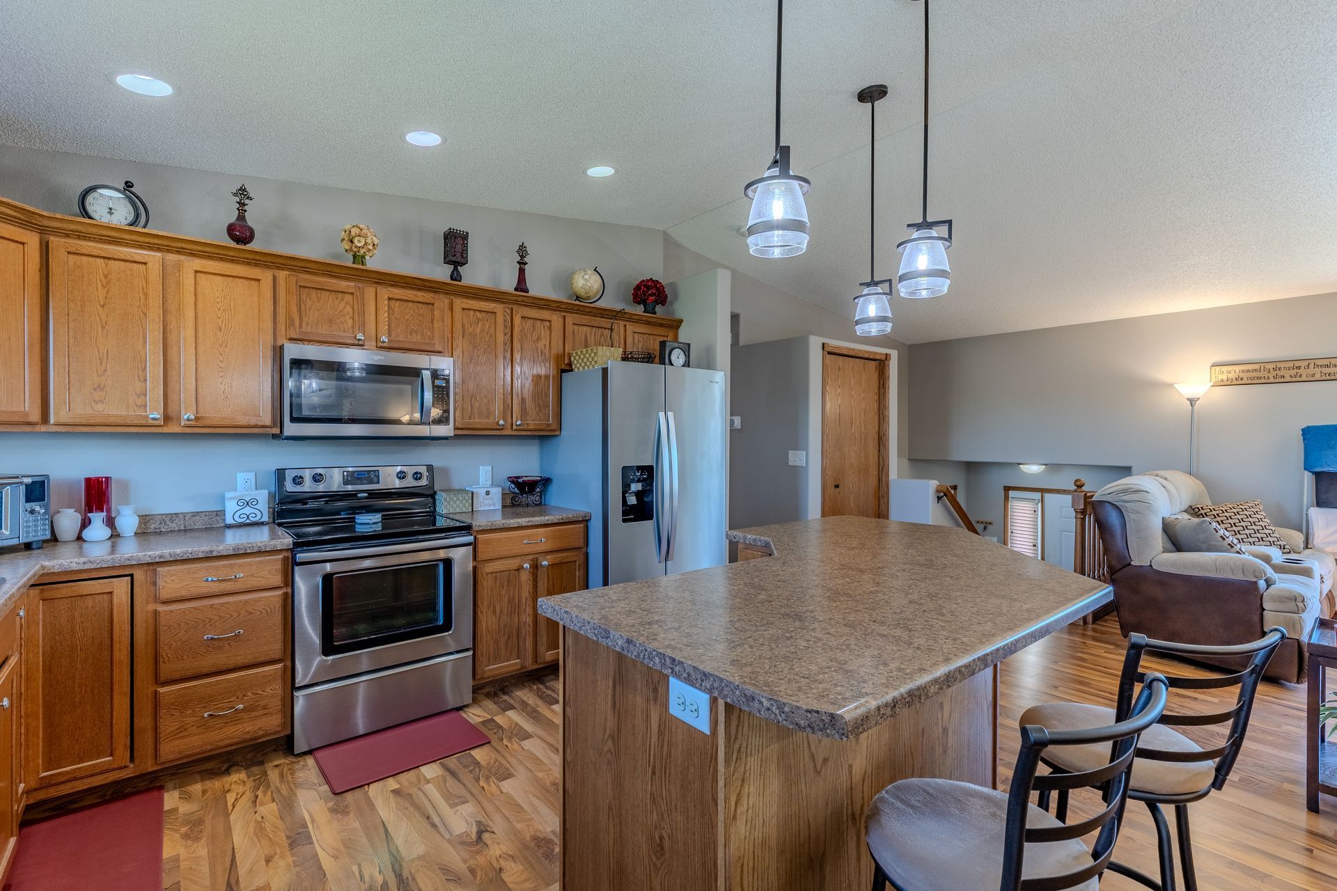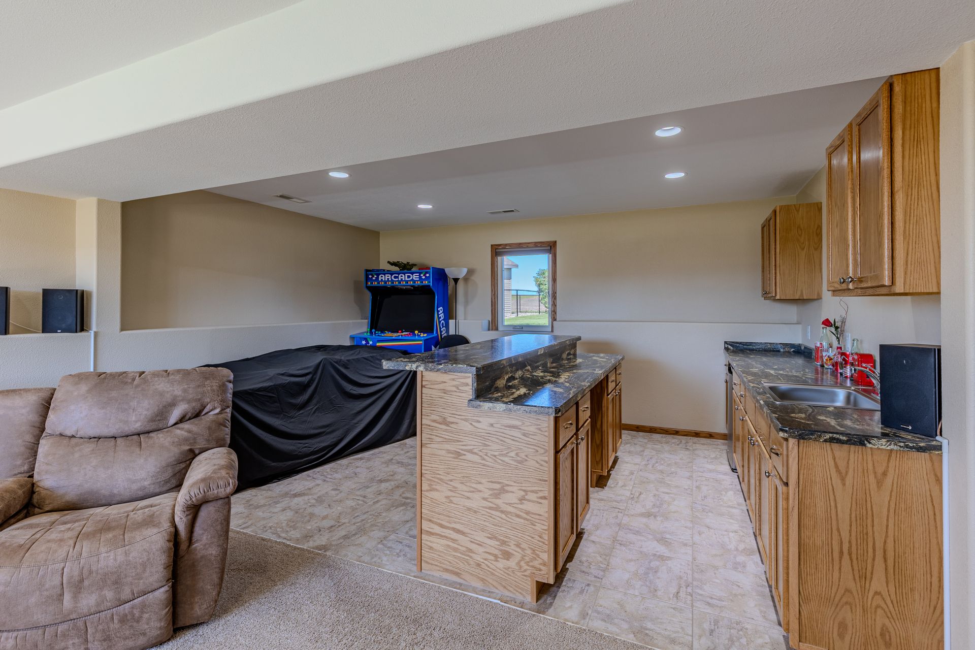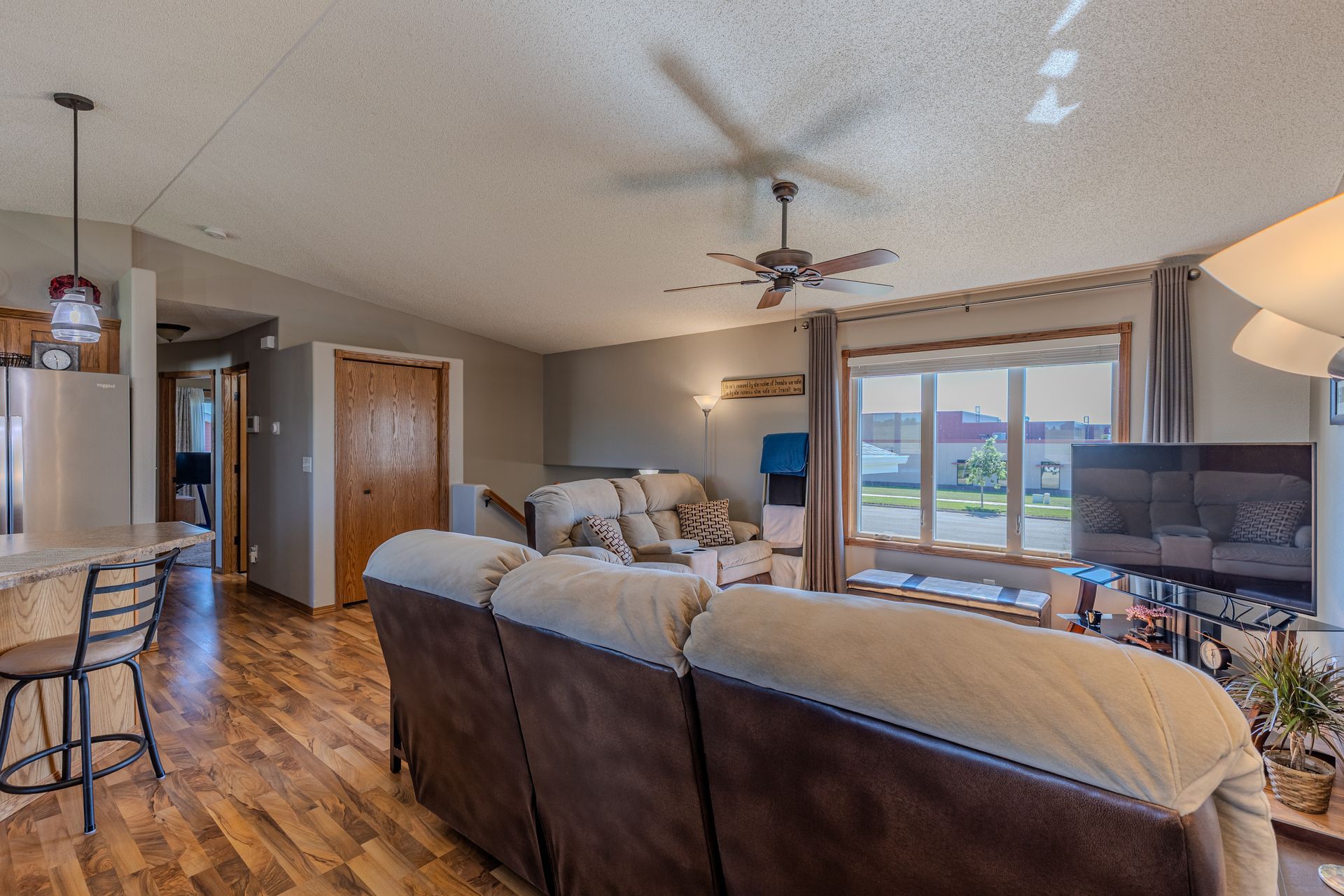 This 4-bedroom, 3-bath home features a main-level primary suite and sits across the street from the elementary school with easy access to 43rd Ave. Enjoy no backyard neighbors, beautiful sunset views, and outdoor living with both a deck and patio. The fully finished lower level includes a custom bar and under-stairs storage. A 24x30 heated garage offers a sink, floor drain, ceiling fans, and a newer opener on the large door, while a 10x16 garden shed with loft provides even more storage. Fully landscaped yard with sprinkler system. Buyer to verify all information.