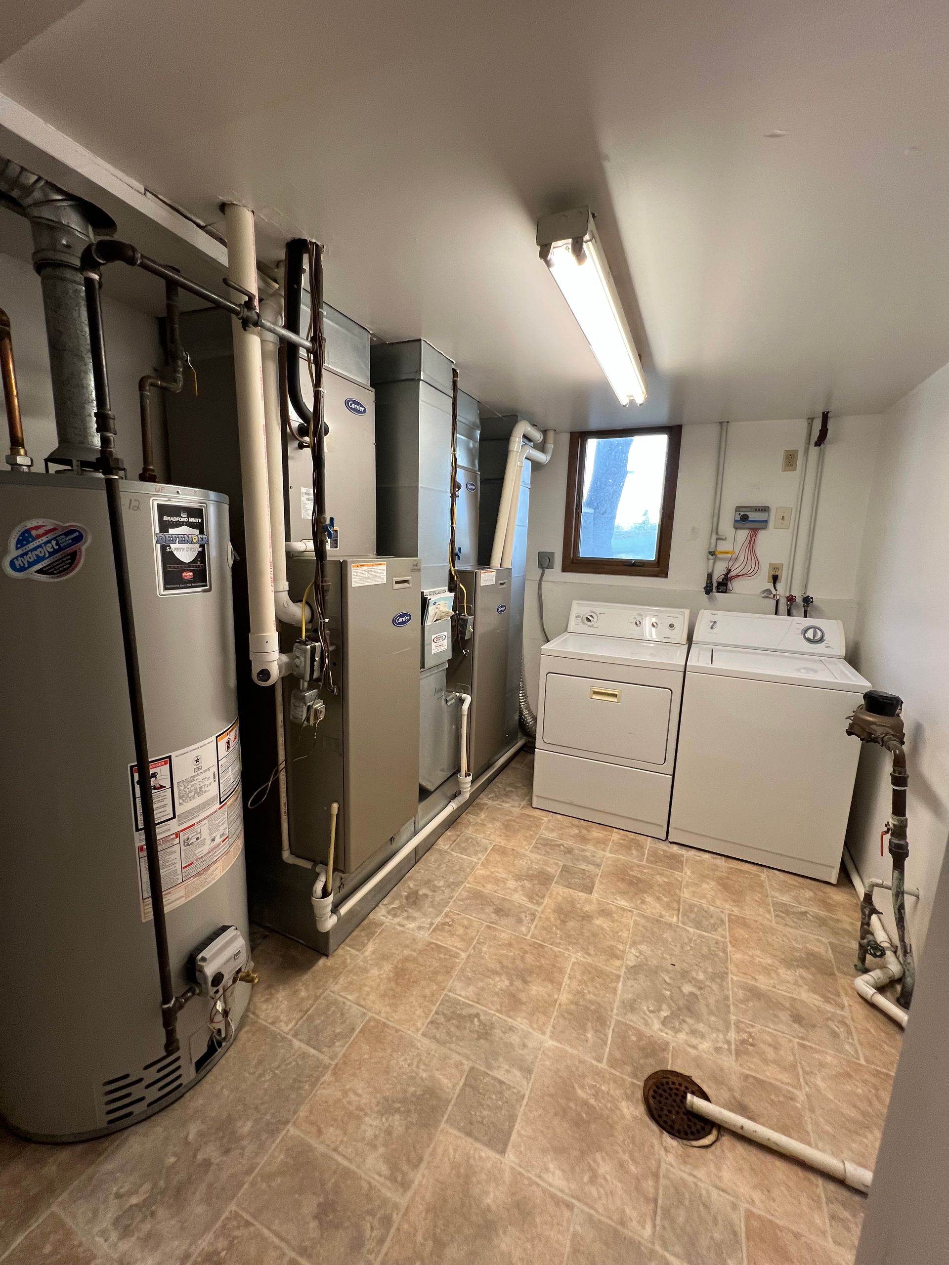Spacious & updated with new carpet, paint and more over/under duplex built in 1978. Upstairs includes 3 bedrooms, 2 bathrooms and large kitchen/dining area with living room. Unit has main floor laundry hook-ups The lower level includes 4 bedrooms, 2 full bathrooms and laundry room with washer & dryer included, office area and large kitchen/dining area. Vinyl siding on the house and a detached 3 stall garage with parking pad. Great as an investment or owner occupant with extra income. Each unit has their own furnace and sperate central air unit. Tenants have paid their own utilities, owner has never paid utilities.