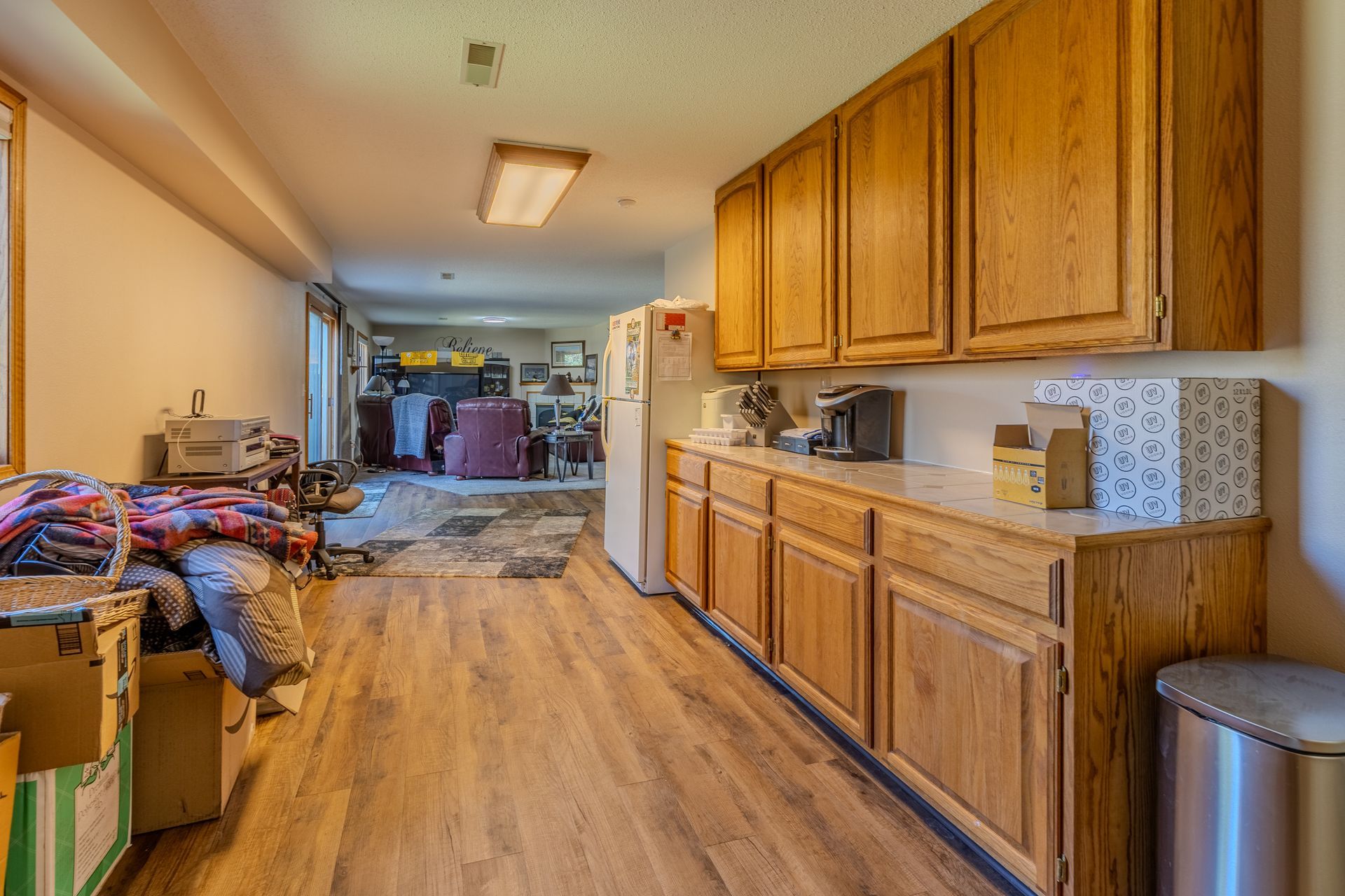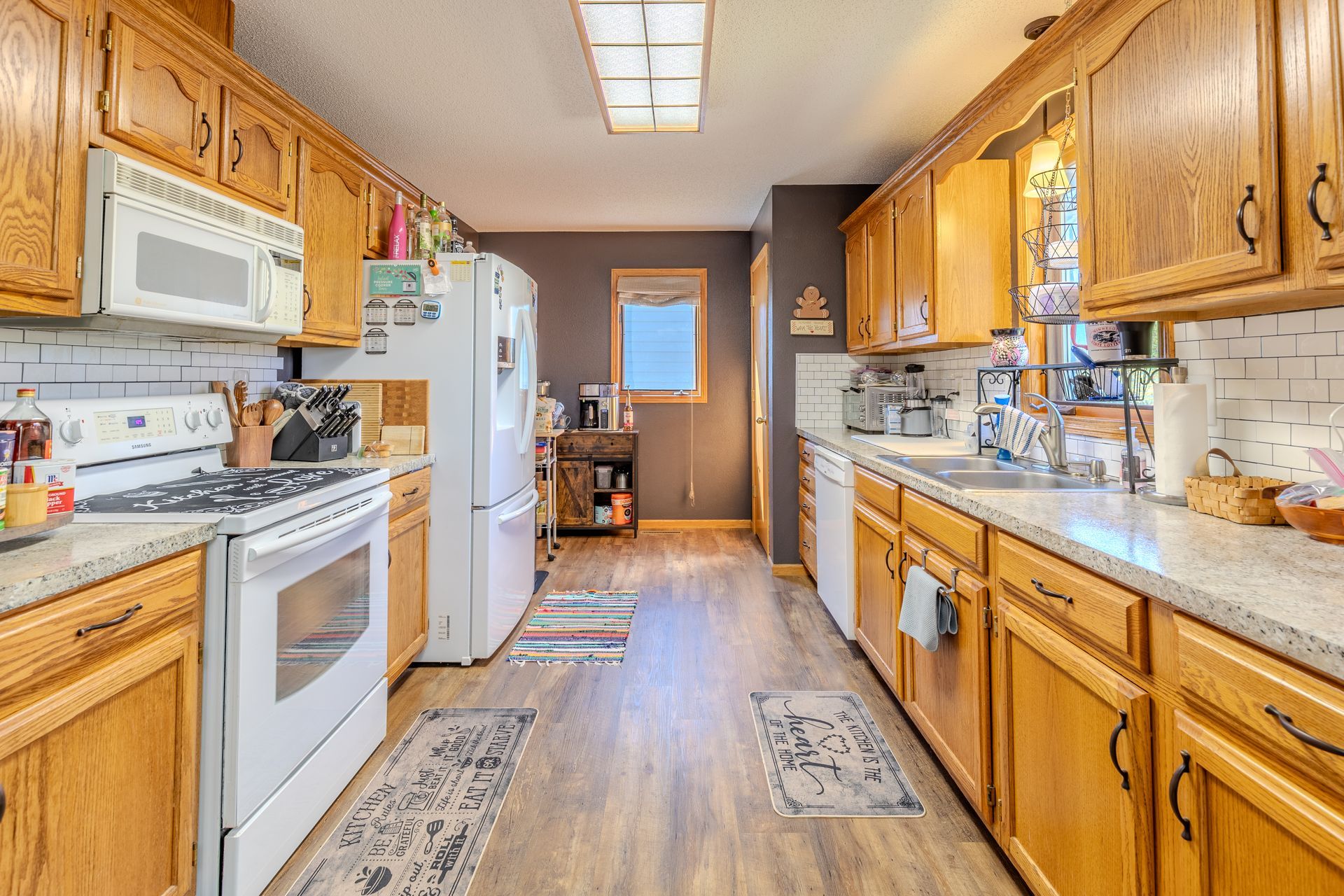 Welcome home to 916 16th St SE, a ranch style home with walk-out lower level in southeast Mandan with no backyard neighbors. This 4 bedroom, 3 bathroom home provides 3 main level bedrooms, open living space and main floor laundry with washer & dryer included. The lower level is great for entertaining with a gas fireplace and walk-out access to the fenced backyard. Updates throughout include some new flooring, lower level shower, new paint on both levels including the ceiling, light fixtures, disposal, furnace with humidifier (2023), shingles (2023), gutters with gutter guards(2023), new deck (October 2025) and more.